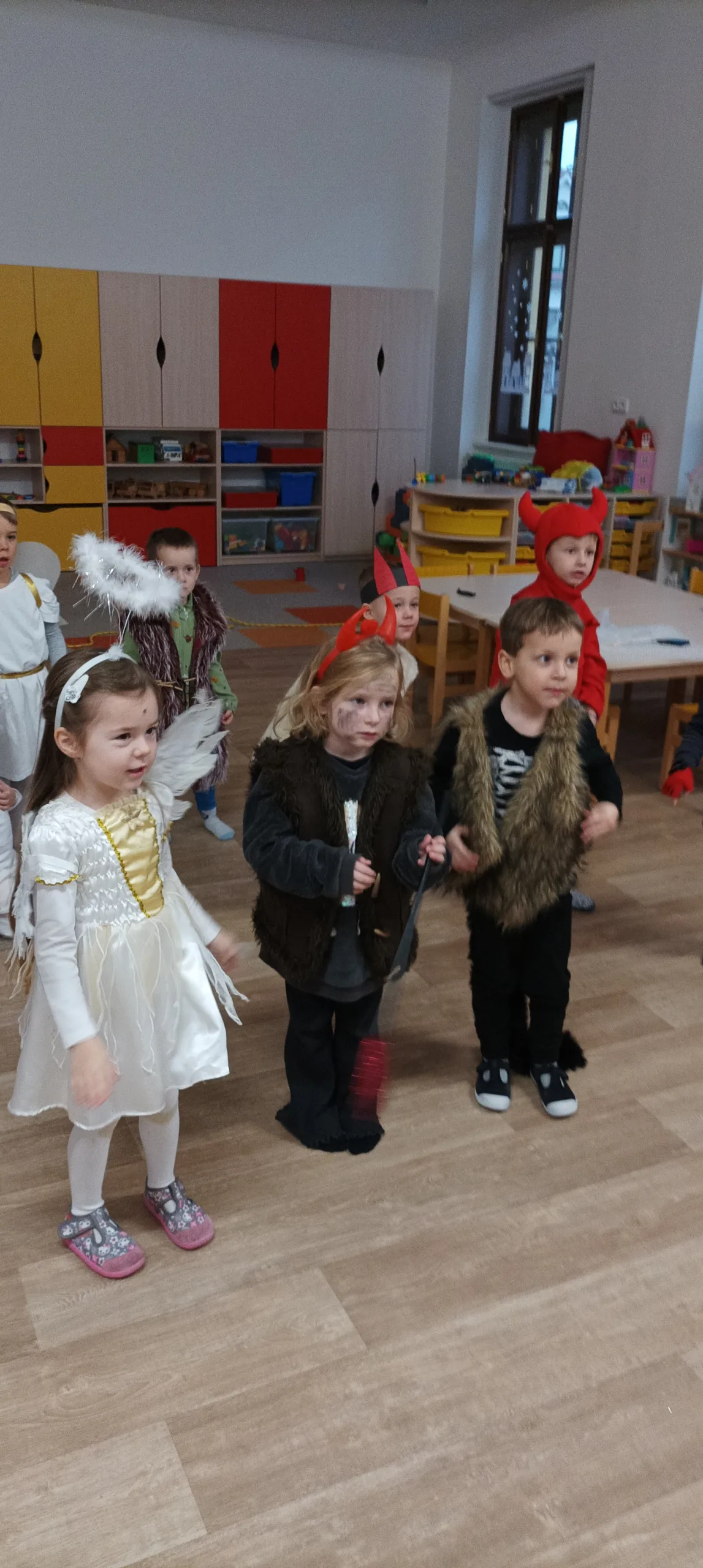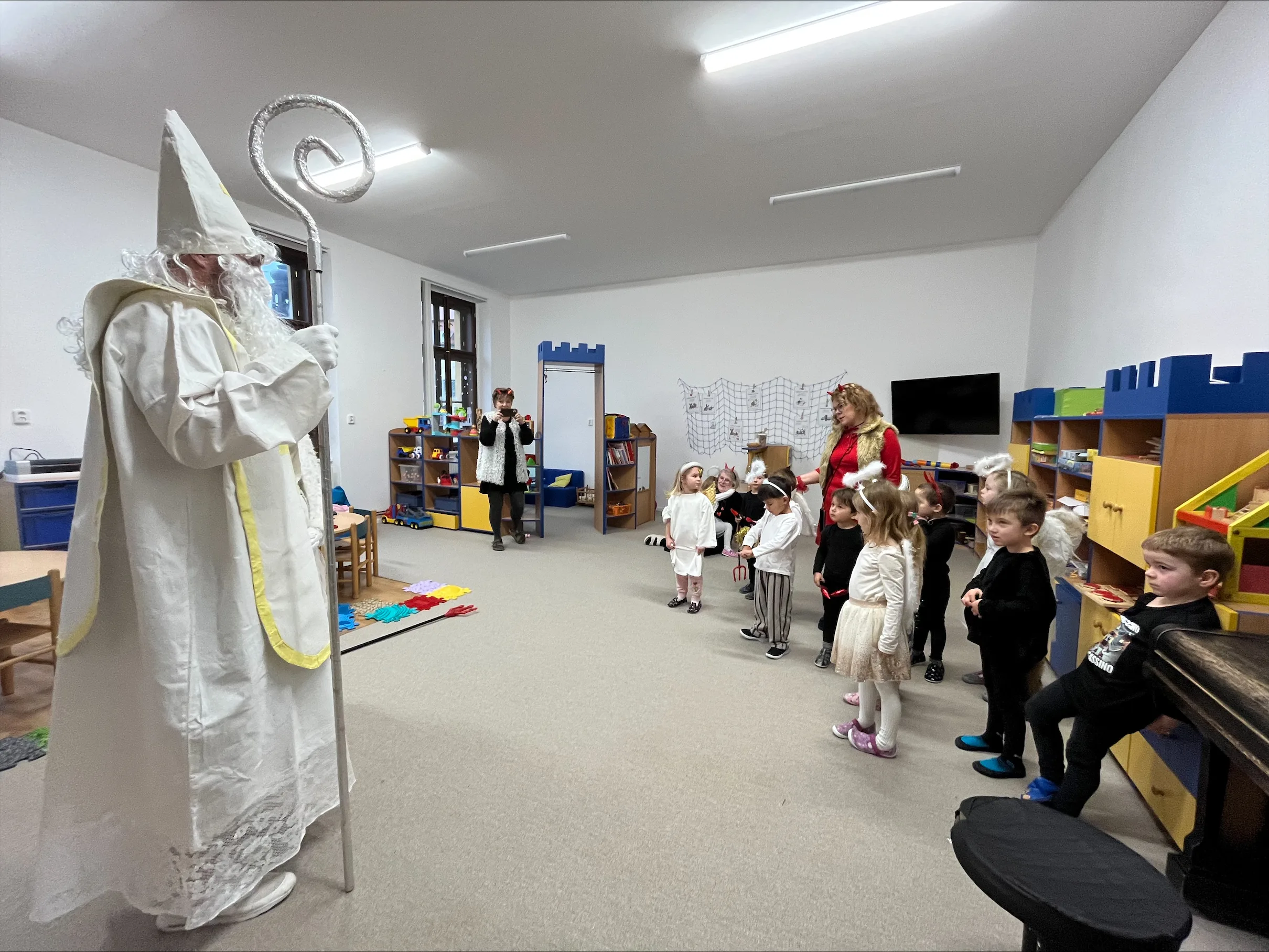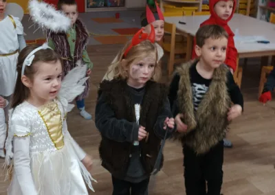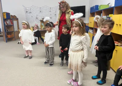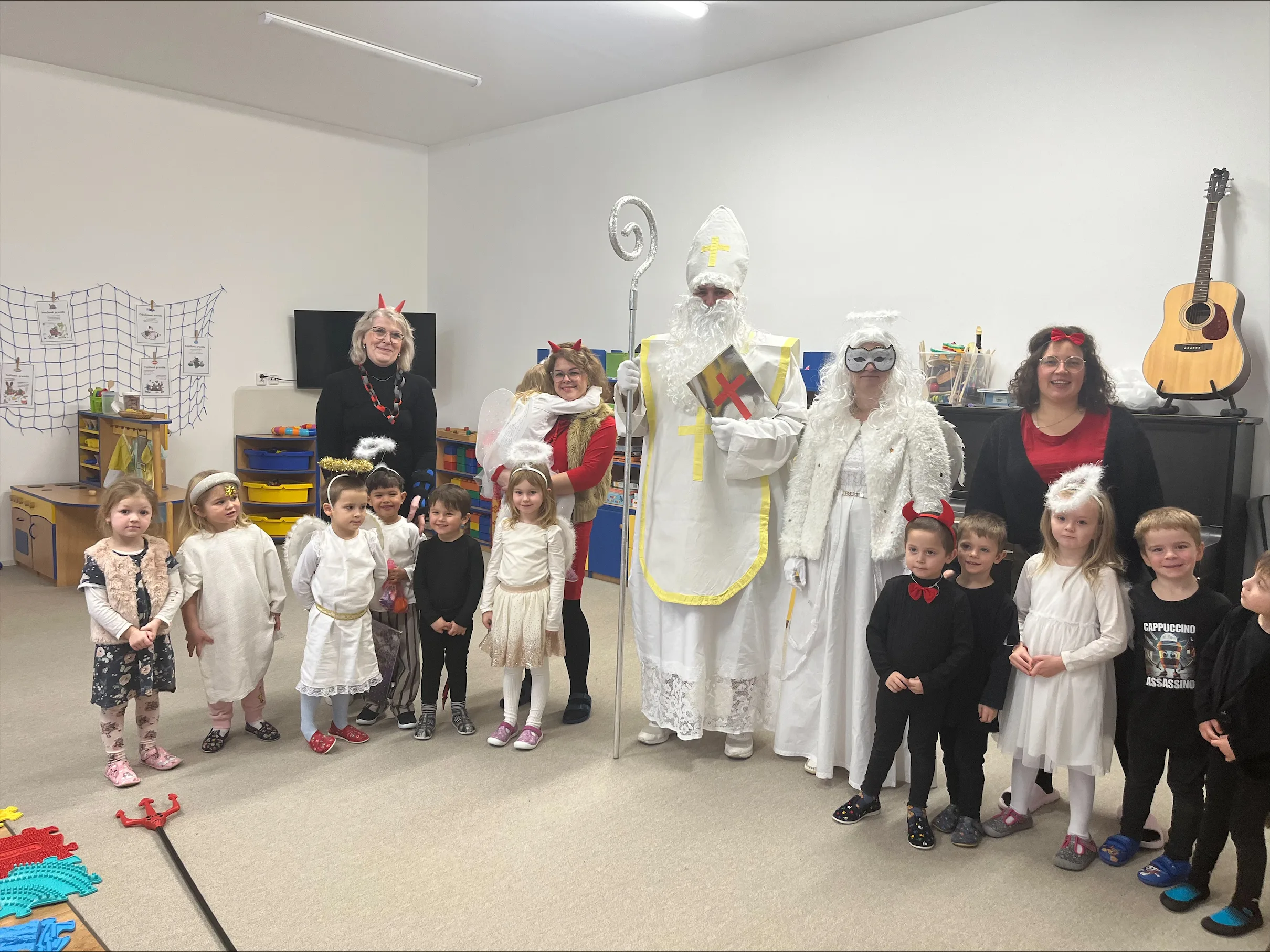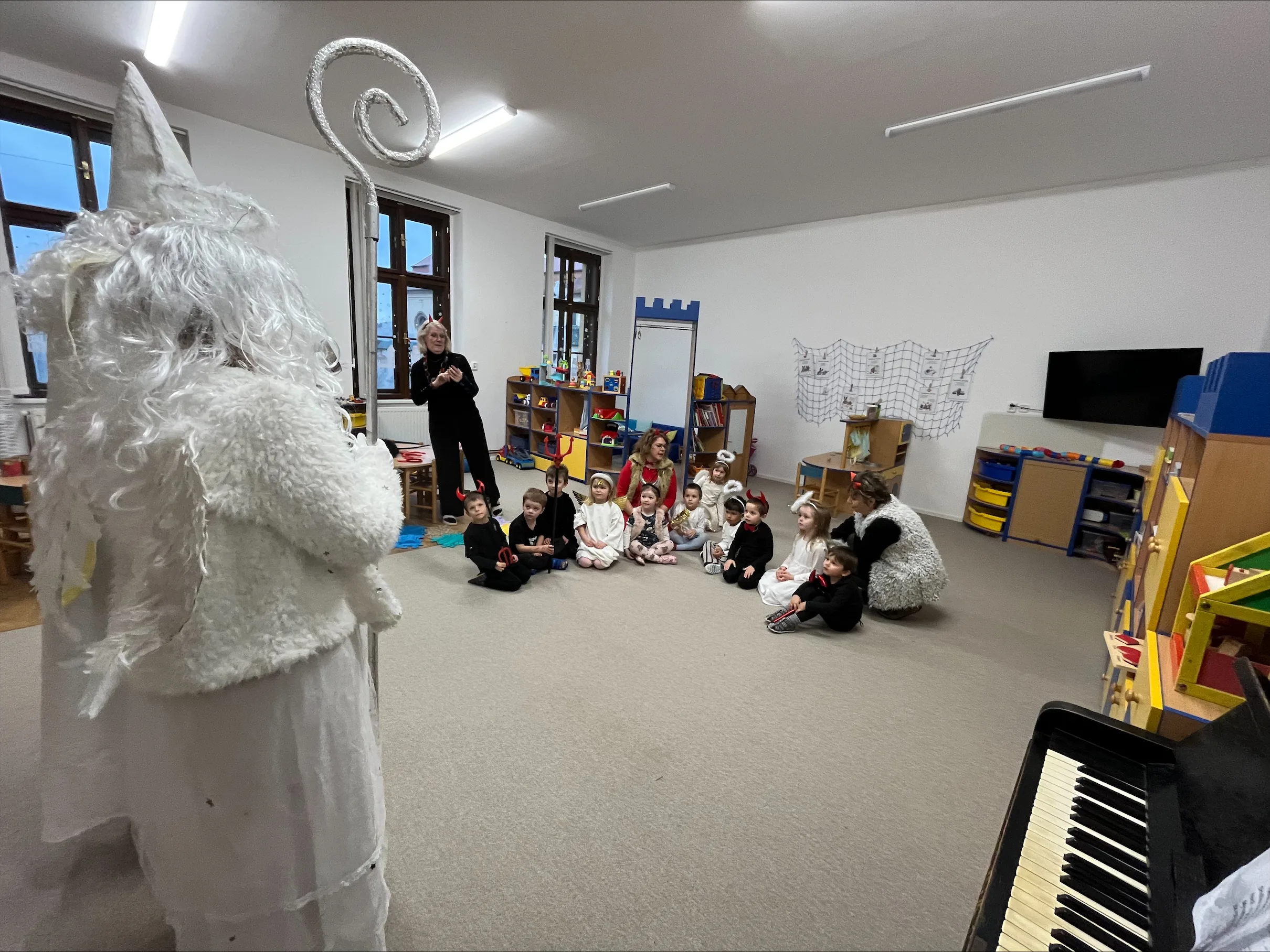Adventní čas se nesl v duchu příprav. Školkou se nesla vůně perníčků a cukroví. Nejprve jsme si užili Den andílků a čertíků. Všechny děti i dospělí se převlékli do kostýmů, rejdili a plnili čarovné úkoly. Po svačince nás poctil svou návštěvou Mikuláš s andělem. Všechny děti dostaly malý dáreček.